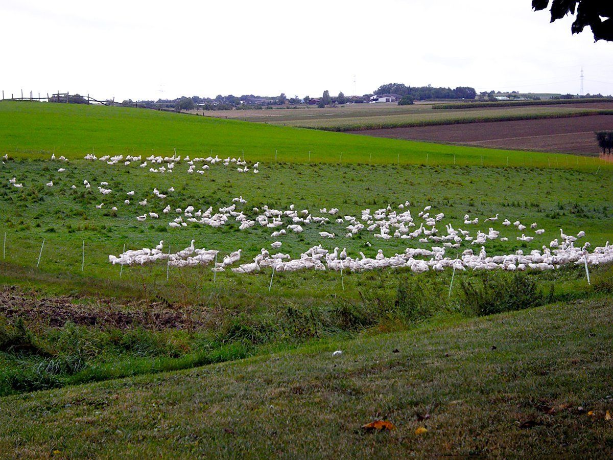 Das Geflügel wird ausschließlich auf Stroh in Bodenhaltung artgerecht gehalten.